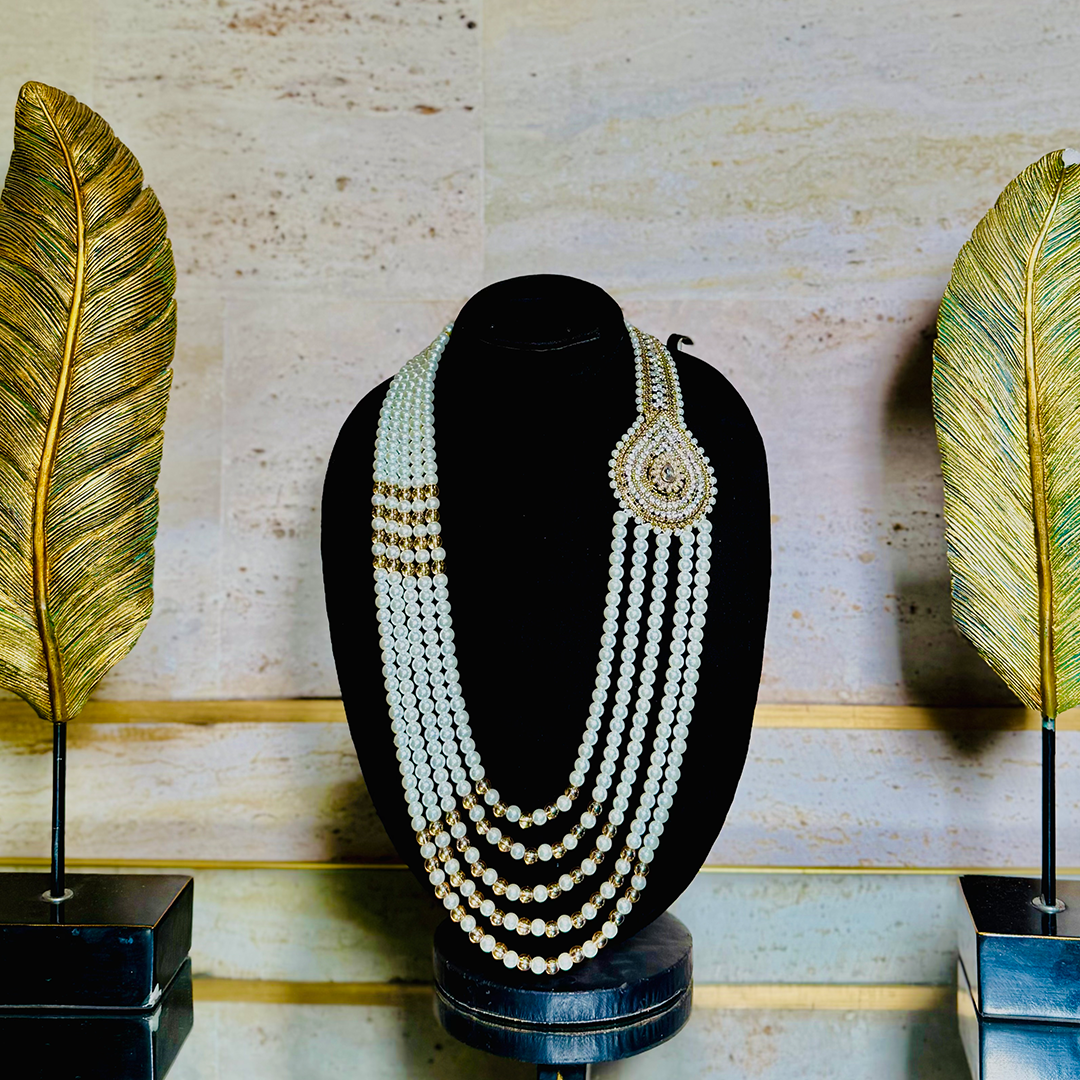 Five Layers Golden And White Pearl Beads Dulha Groom Sherwani Necklace/Moti Mala for Men For...