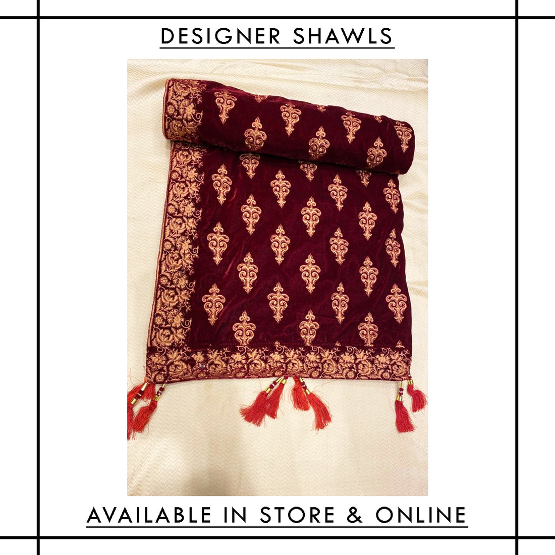 S-014 Pure Designer Velvet Shawl with Four Sided Embroidered Border