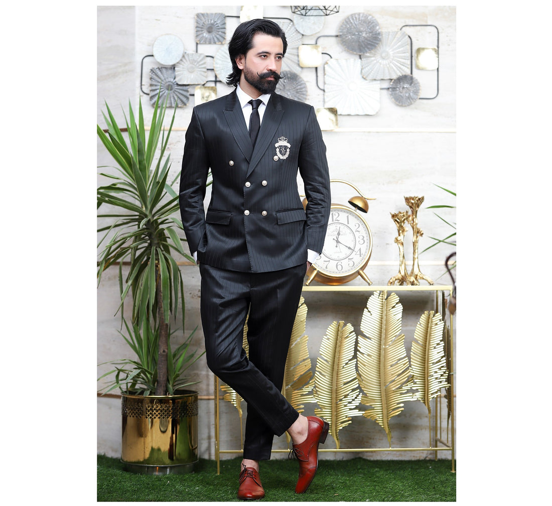 This Designer 2pc Double Breasted Bespoke Suiting with Pocket Motive is a complete package by...