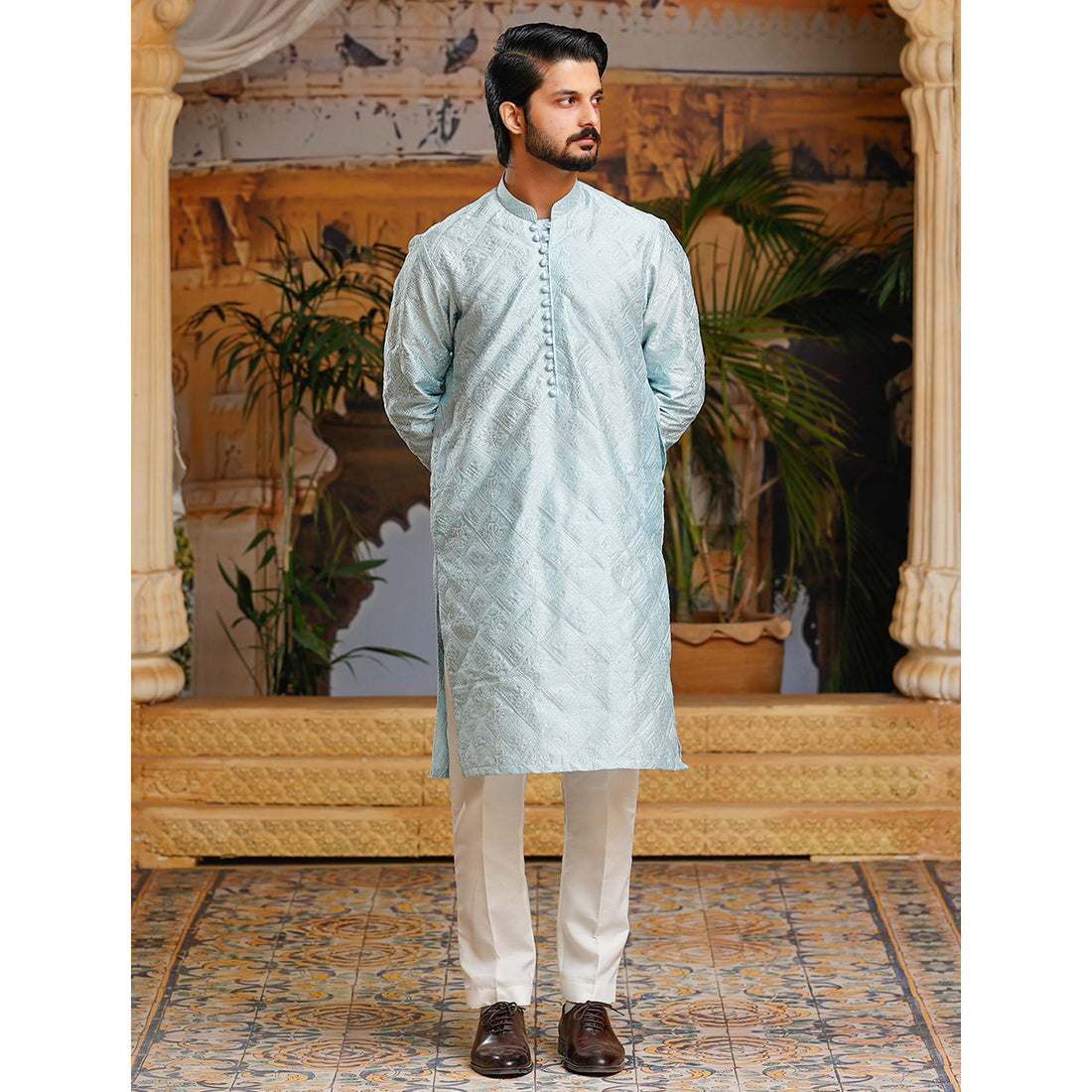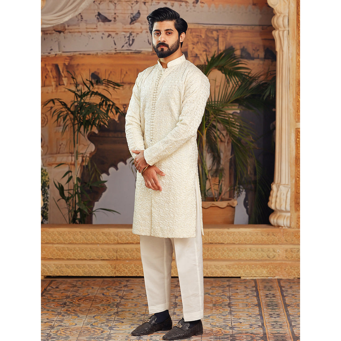 𝗘𝗠𝗔𝗗 — 𝗣𝗮𝗿𝘁𝘆𝘄𝗲𝗮𝗿 𝗞𝘂𝗿𝘁𝗮 is crafted from premium embroidered fabric, this open-style Sherwani Kurta is...