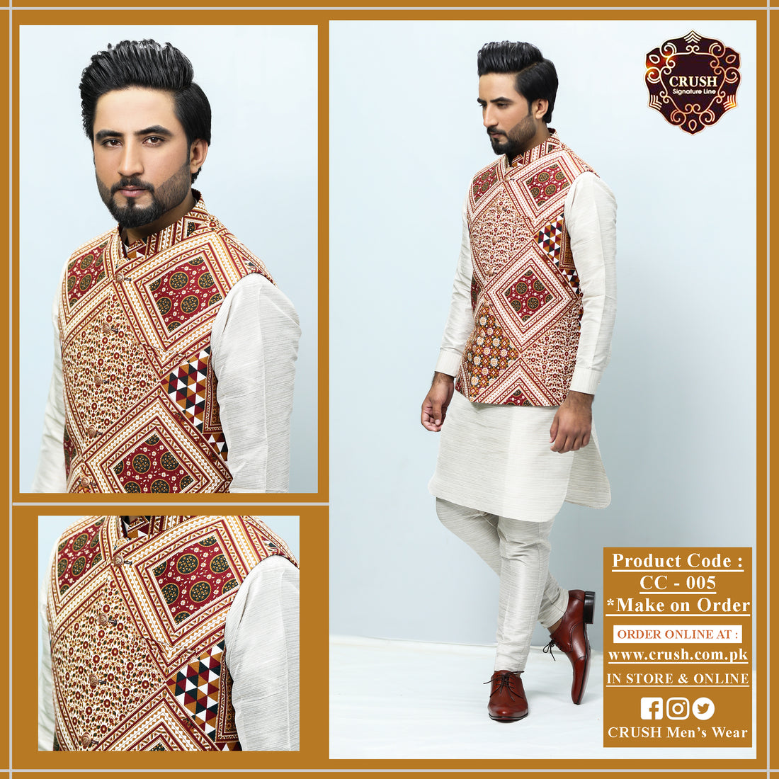 This Embroidered Waistcoat with Gold & Copper Tilla is a perfect fit for every Groom...