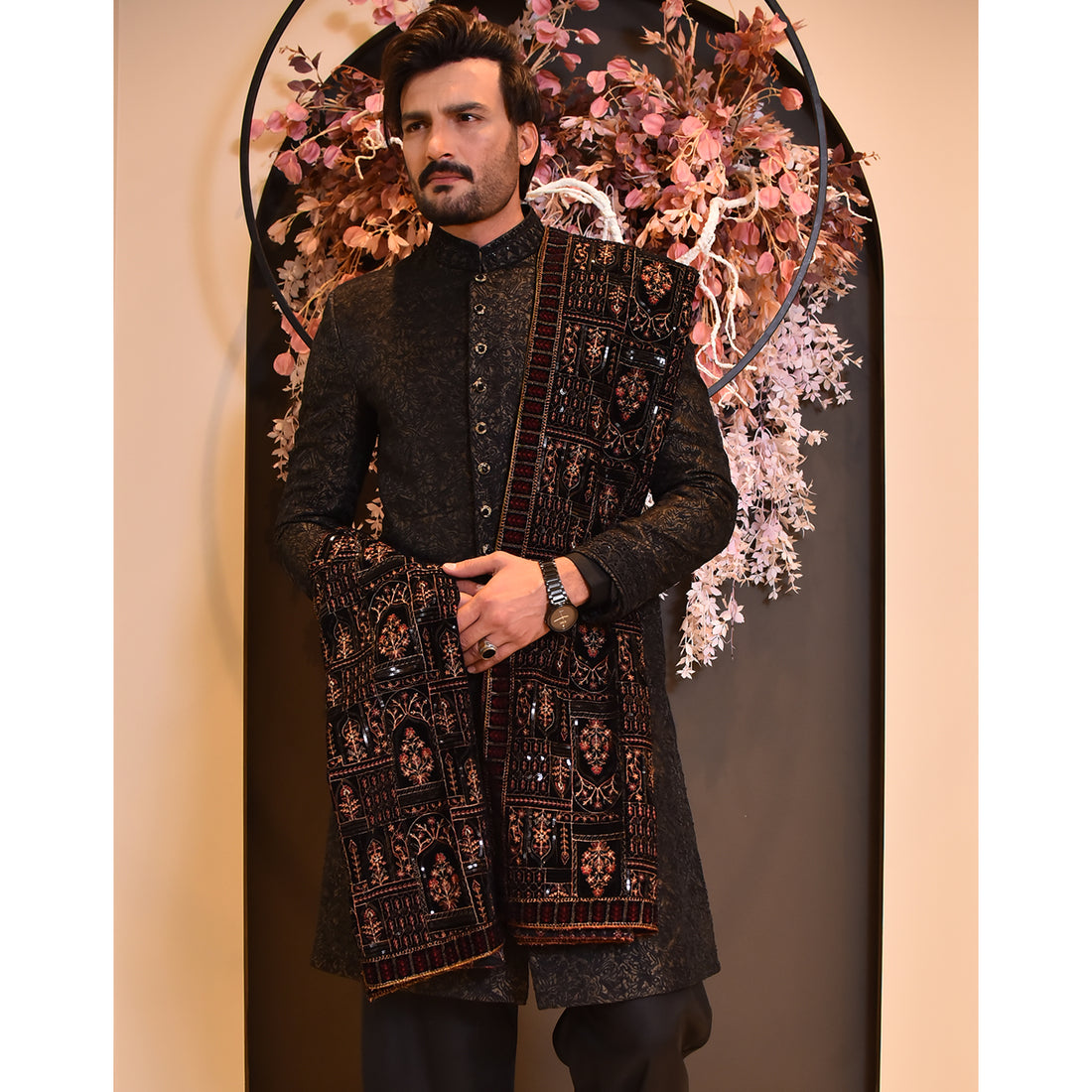 Embroidered Sherwani w/ Kora Dabka Handwork