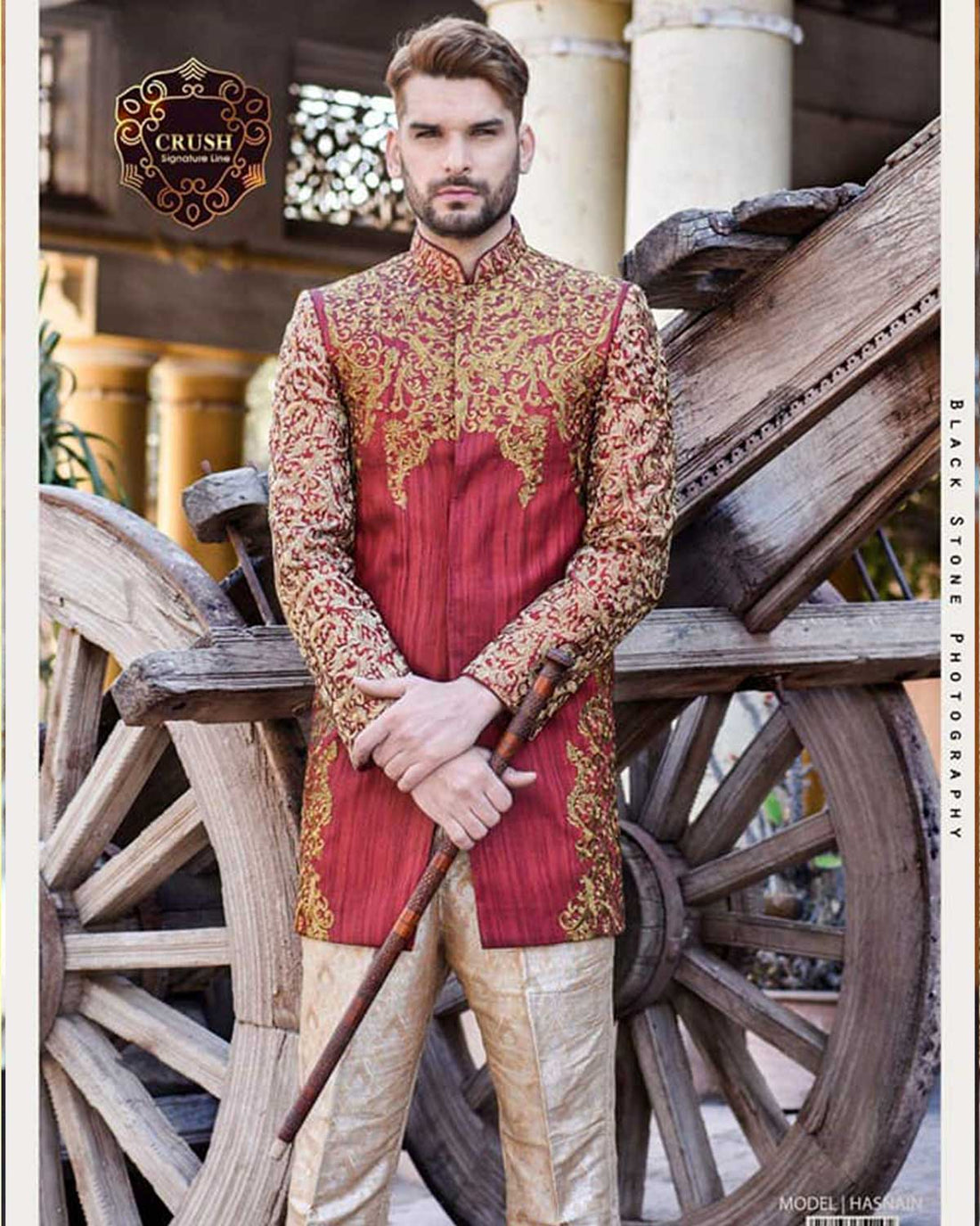 This Karrandi Jamawar Sherwani is the perfect fit for you on your Wedding Days and...