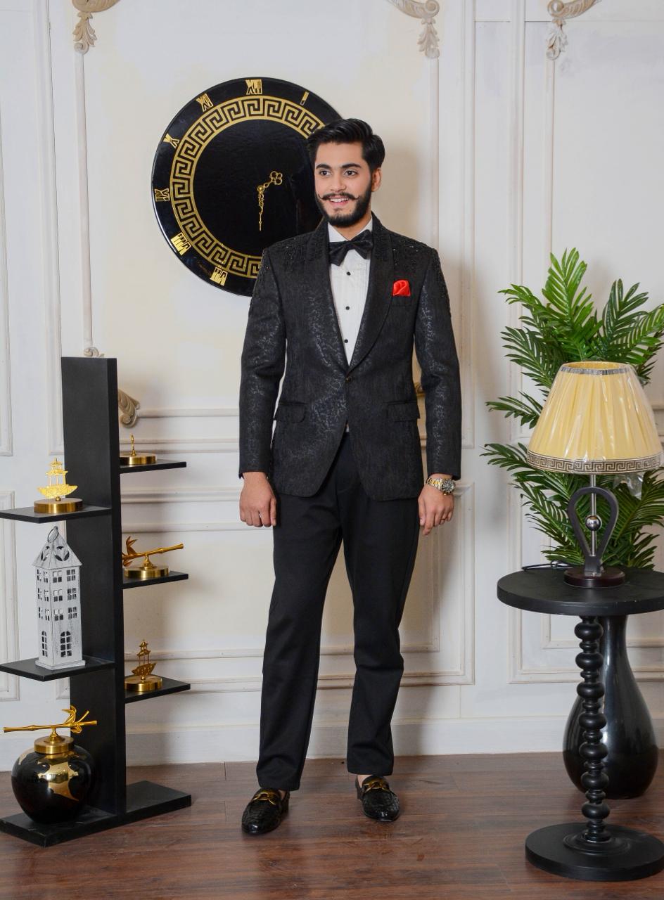 Embroidered Fabric – 3pc Bespoke Tuxedo Suit